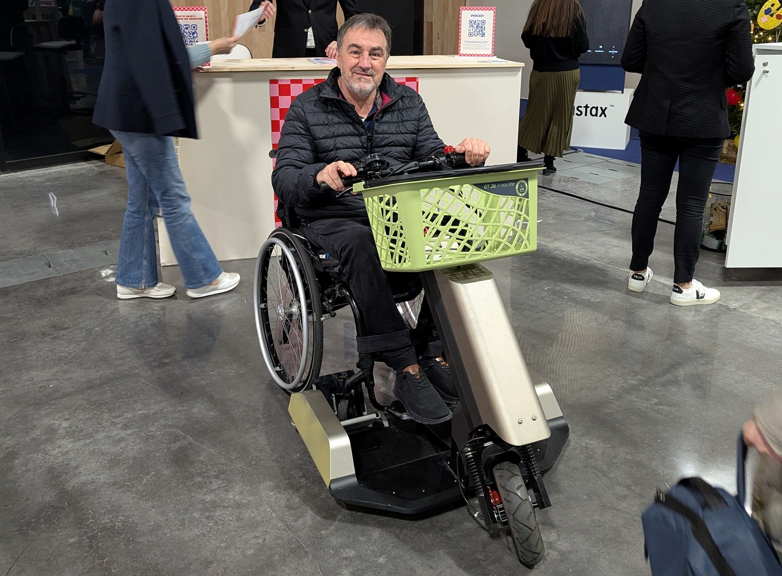 Il y a huit ans, un accident de moto bouleverse la vie de Laurent. Devenu paraplégique et utilisateur d’un fauteuil manuel, il se retrouve confronté à de nombreuses difficultés. Faire ses courses devient un véritable défi logistique. « Il n’existait rien d’adapté pour permettre à une personne en fauteuil manuel de faire ses courses de manière autonome et confortable ».